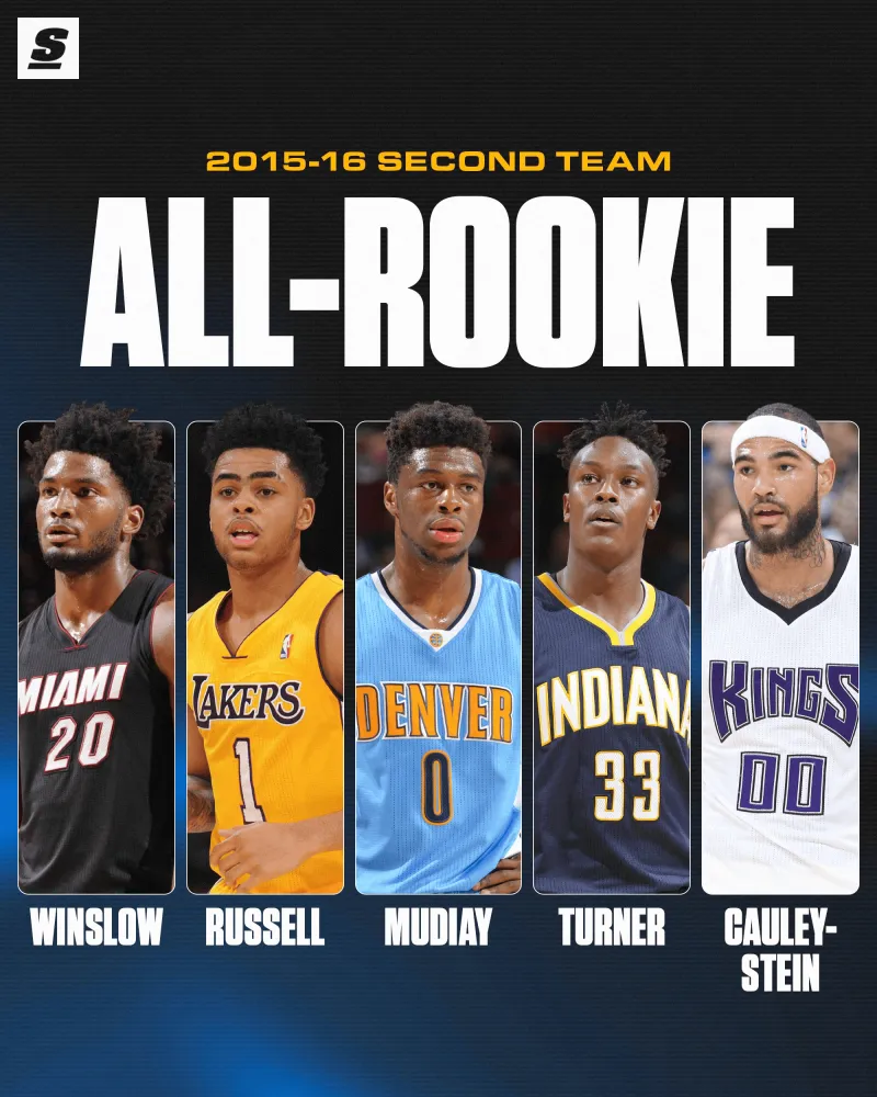 最佳新秀二阵为:温斯洛、拉塞尔、穆迪埃、特纳和考利斯坦。