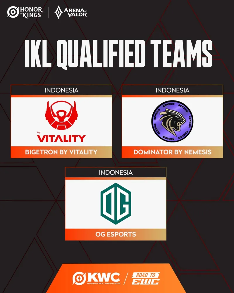 与此同时,IKL的三强战队BTR、DMT和OG也成功进入KWC王者荣耀世界杯